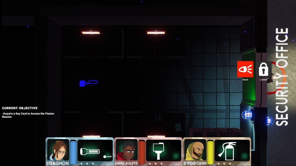 - UI and UX improvements. I helped to implement the code that powers the game’s main user interface (specifically the parts pertaining to units’ inventories), added a simple aim indicator for the fire extinguisher, and added room labels that can be turned on and off to help guide the player through the environment and signpost areas that they’ve explored.
